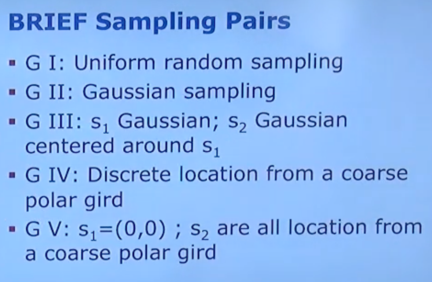 - 각 pair별로 intensity를 비교해서 0, 1의 binary bit를 반환